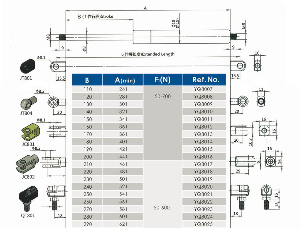注:由于氣彈簧是非標(biāo)準(zhǔn)的,以上僅為型號的一部分。我們可以根據(jù)客戶的要求定制。