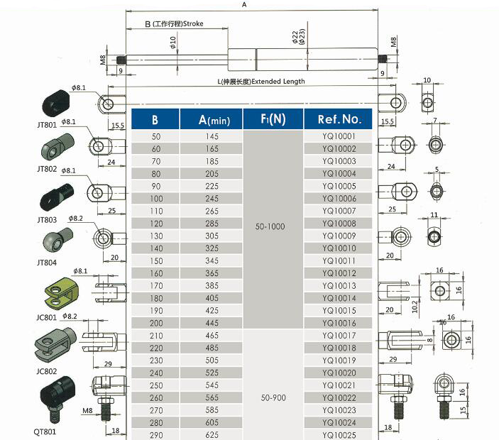 注:由于氣彈簧是非標準的,以上僅為型號的一部分。我們可以根據客戶的要求定制。